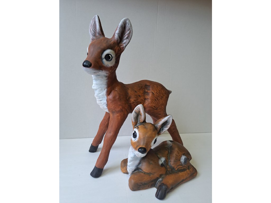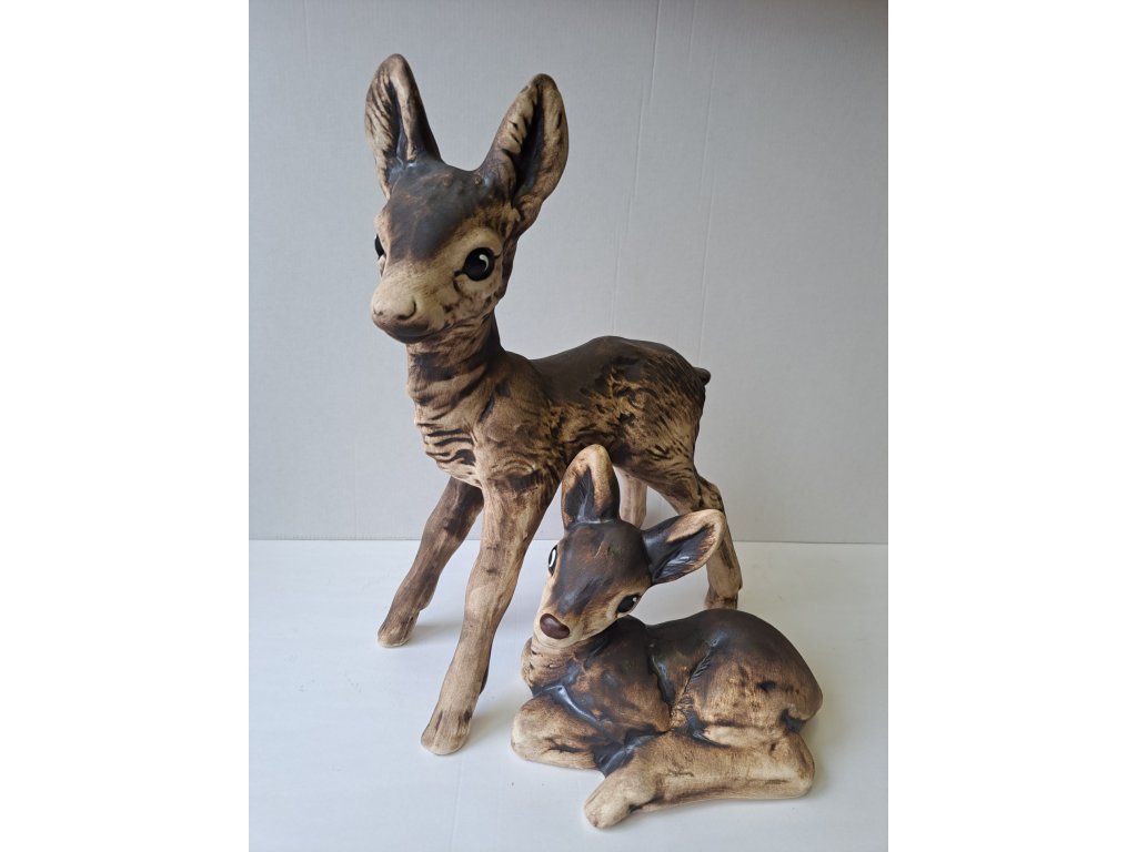 Srnka ležící, keramická dekorace. V nabídce je v malované nebo režné variantě. hezky vypadá s velkou srnkou stojící.