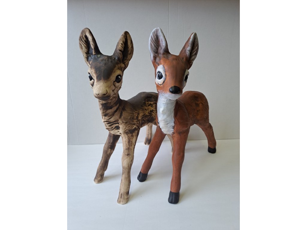 Srna stojící, keramická dekorace do zahrady. Hezky vypadá samostatně postavená,ale kouzlo dodá malý bambi kolouch.