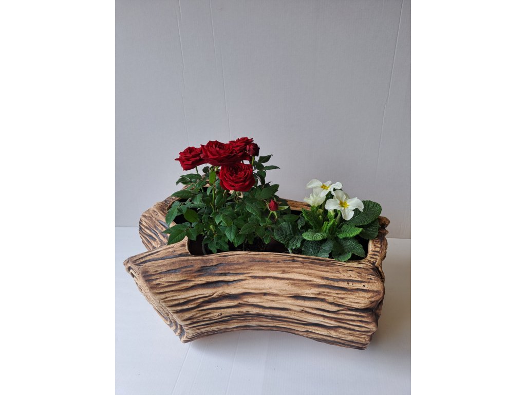 reálná keramická dekorace na zahradu. K osázení květinami. Je opatřena otvory k odtoku přebytečné vody.