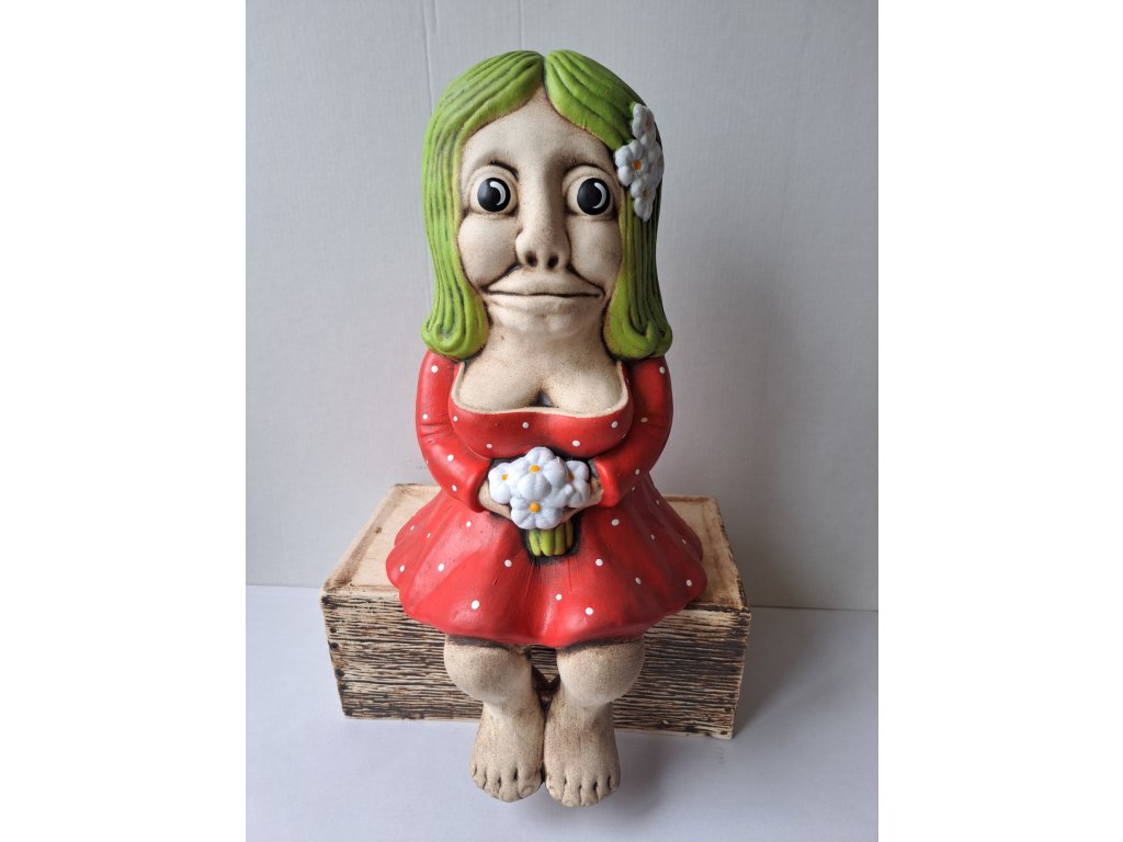 KERAMICKÝ VODNÍK NEBO VODNICE SEDÍCÍ šířka sedu21cm. dekorace k jezírku nebo do zahrady.