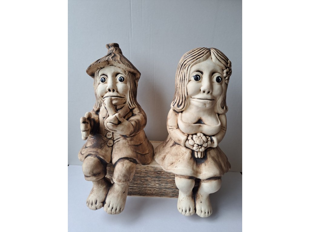 ZADRADNÍ KERAMICKÉ DOKORACE VODNÍK-VODNICE v Režném provedení. Vkusná FIGURA k vodnímu prvku do vaší zahrady.